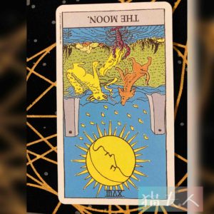 逆位置だからといって、悪いわけではありませんのよ。ムーンの逆位置は、夜明けに近づいている、ですからね。
