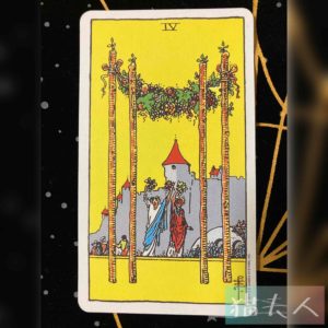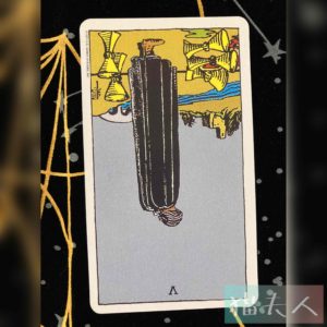 問題はこちらですわね。陽線を選んだその先、カップのⅤ逆位置。これ自体は喪失感の現れですけれど、逆位置ならば失ったあとに~のアドバイスですわ。